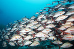 Dive guide Gabriel using his fins to "skimboard" along in the current during a safety stop