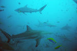 There are 19 reef sharks in this picture, but there were a total of 32. they ranged in size from about 3 feet to over 6 feet.