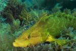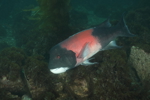 This female sheephead is in transition to becoming a male sheephead, as you can see the dark areas forming