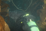 Seiji getting a close look at one of the giant sea bass.