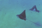 Our boat on the surface, with a ray underneath