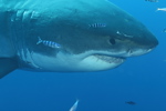 See my teeth!  This was taken from about a foot away from the shark, with a fisheye lens